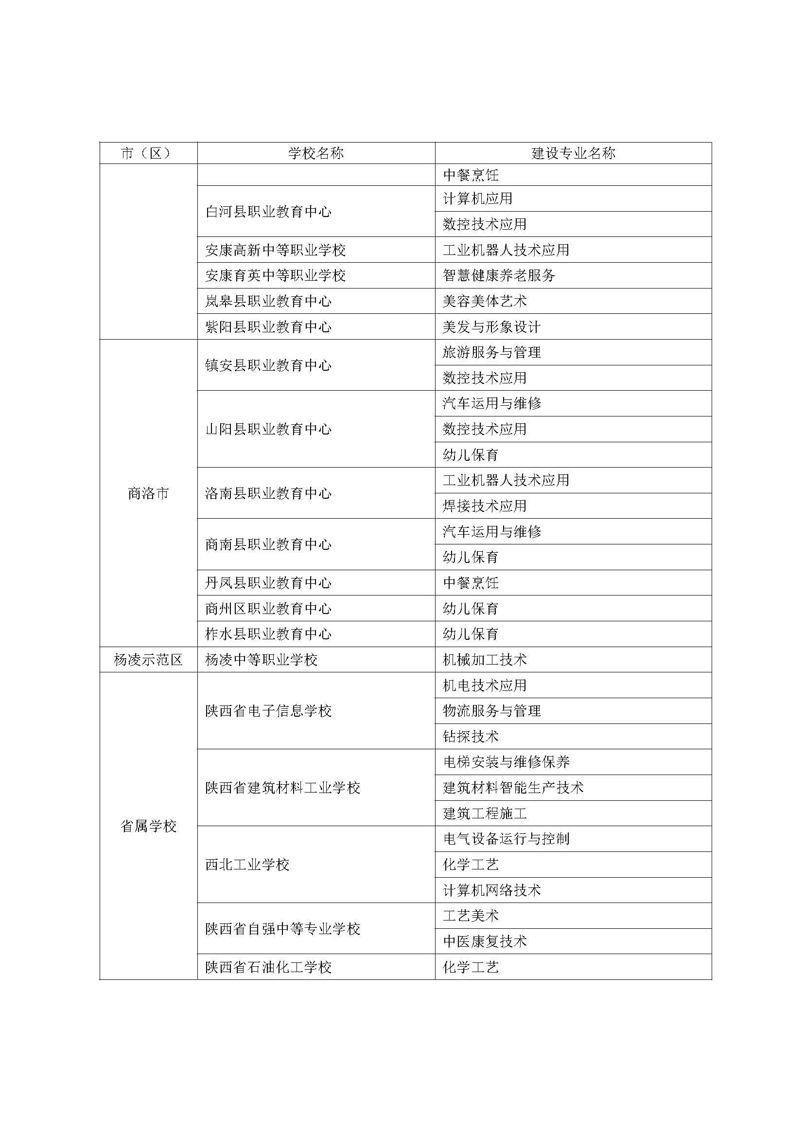 根據(jù)《陜西省教育廳 陜西省財政廳關(guān)于印發(fā)〈陜西省中等職業(yè)教育優(yōu)質(zhì)學(xué)校和優(yōu)質(zhì)專業(yè)建設(shè)計劃實施方案〉的通知》(陜教〔2023〕10號,以下簡稱《實施方案》),經(jīng)學(xué)校申報、市級推薦、形式審查、專家評審和結(jié)果公示等程序,現(xiàn)將50所陜西省高水平示范性中等職業(yè)學(xué)校和150個示范專業(yè)建設(shè)項目(以下簡稱“雙示范”建設(shè)項目)名單予以公布,并就做好有關(guān)工作通知如下。