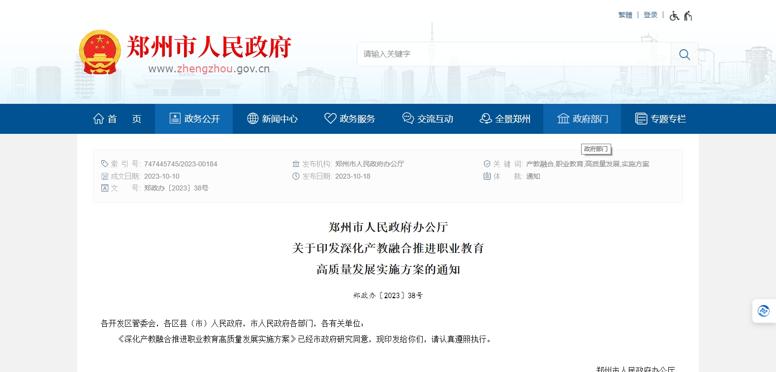 10月18日,鄭州市人民政府辦公廳印發(fā)《深化產(chǎn)教融合推進(jìn)職業(yè)教育高質(zhì)量發(fā)展實(shí)施方案》(簡稱《方案》)。