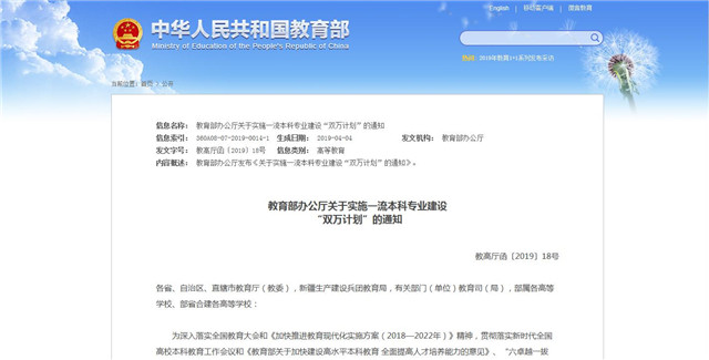 教育部:?jiǎn)?dòng)一流本科專業(yè)建設(shè)“雙萬計(jì)劃”