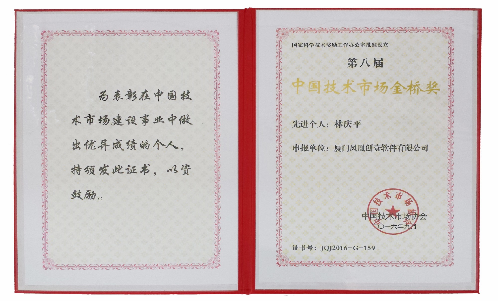 日前,中國(guó)技術(shù)市場(chǎng)協(xié)會(huì)公布了“第八屆中國(guó)技術(shù)市場(chǎng)金橋獎(jiǎng)”獲獎(jiǎng)名單,本司(廈門(mén)鳳凰創(chuàng)壹軟件有限公司www.jszgld.com)總經(jīng)理兼技術(shù)總監(jiān)林慶平博士榮膺“第八屆中國(guó)技術(shù)市場(chǎng)金橋獎(jiǎng)金橋獎(jiǎng)......