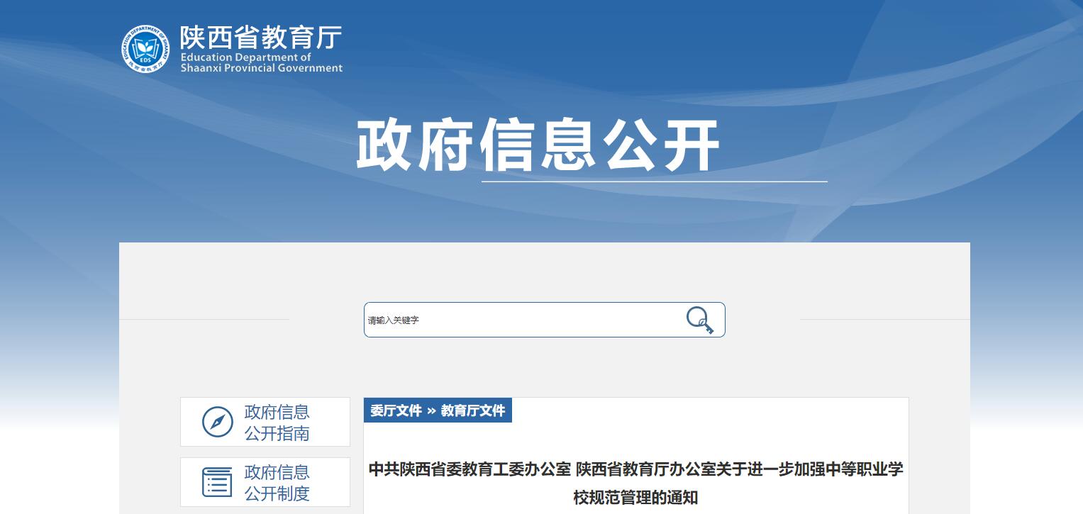 陜西省教育廳發(fā)布《關(guān)于進(jìn)一步加強(qiáng)中等職業(yè)學(xué)校規(guī)范管理的通知》