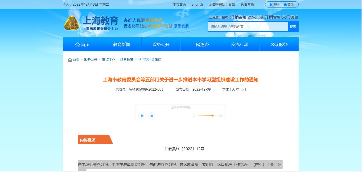 上海市教育委員會等五部門關(guān)于進一步推進本市學(xué)習(xí)型組織建設(shè)工作的通知