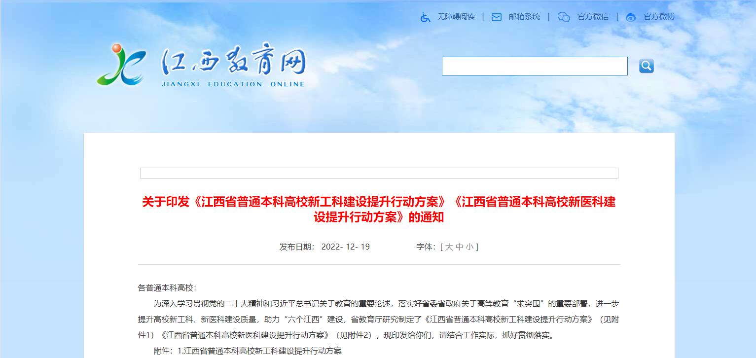 江西省教育廳發(fā)布《江西省普通本科高校新工科建設(shè)提升行動方案》《江西省普通本科高校新醫(yī)科建設(shè)提升行動方案》