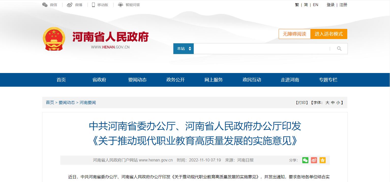 中共河南省委辦公廳、河南省人民政府辦公廳印發(fā) 《關(guān)于推動現(xiàn)代職業(yè)教育高質(zhì)量發(fā)展的實施意見》