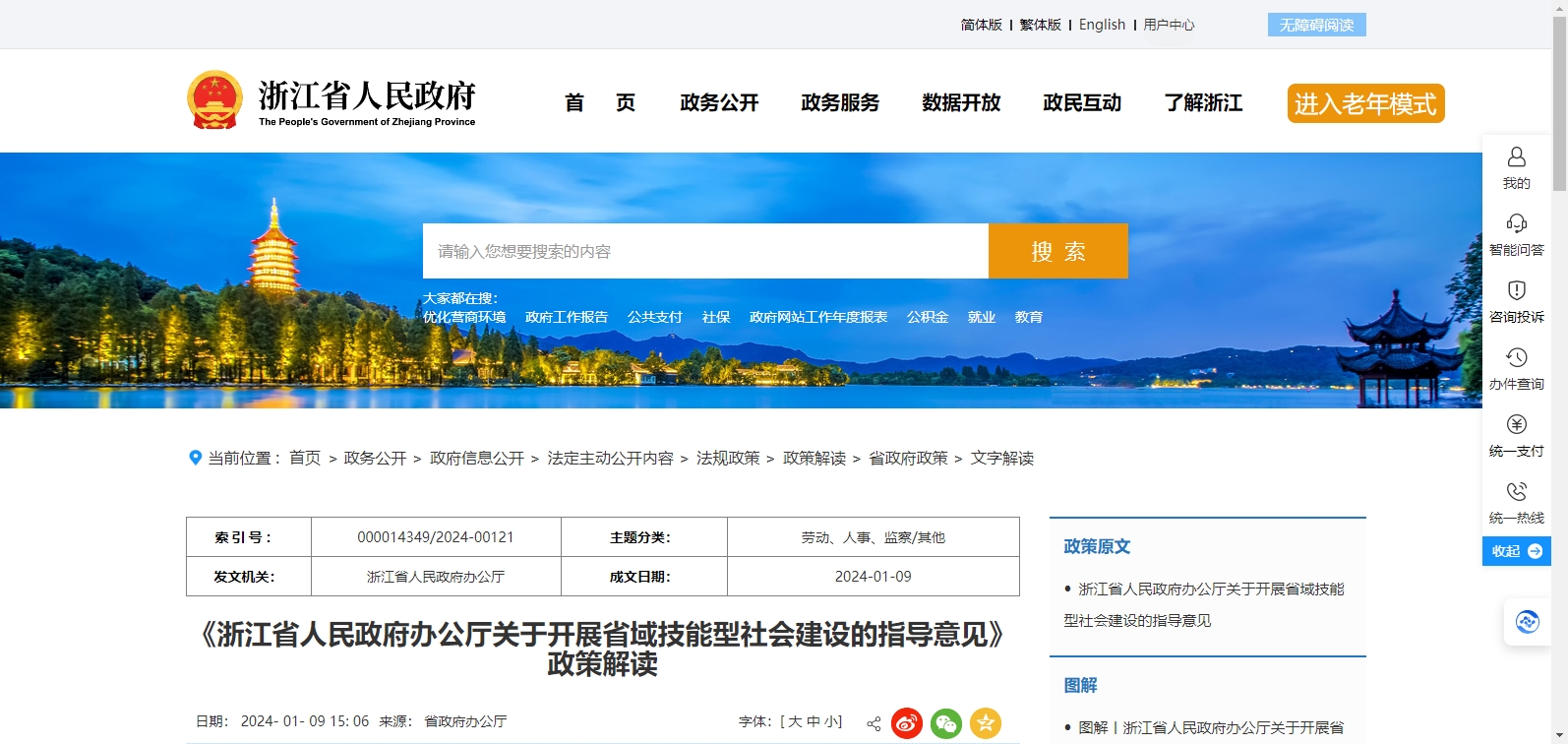 浙江省政府官網(wǎng)1月9日發(fā)布《關(guān)于開展省域技能型社會建設(shè)的指導(dǎo)意見》,提出到2027年全省技能人才總量達(dá)1500萬人以上,占從業(yè)人員的比重超過37%;高技能人才550萬人以上,占技能人才的比重超過37%......